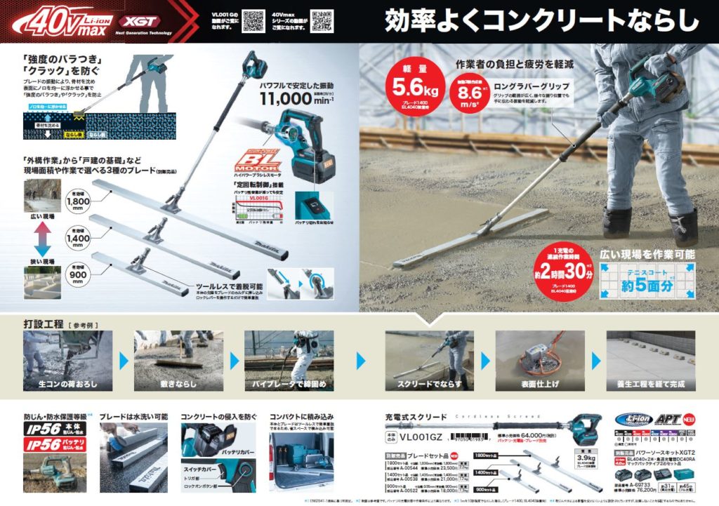 NEWS お知らせ ホーム お知らせ マキタ 充電式スクリード 新登場 商品情報 2026.03.27 マキタ 充電式スクリード 新登場 コンクリートならし用充電式スクリードが、いよいよマキタ40Vで新登場! 幅900、1400、1800mmの三種類 効率&スピーディな土間施工が可能! Prev 一覧に戻る